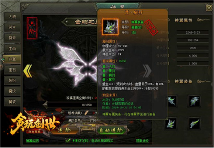 当你的游戏角色开服第13天,神翼达到六阶开启,可在神翼界面进行查看。首先,神翼装备共包含飞羽、覆羽、肩羽、翼羽4件。可在锻造-物品合成中进行合成,使用对应装备碎片进行合成1阶装备,使用3件同阶装备可合成下阶装备。穿戴4件神翼装备可激活被动技能“重生”:血量低于20%时,受到攻击可概率瞬间恢复自身生命上限一定%的生命值。那怎么样才可以获得这么强的装备呢?可以通过新版跨服争霸活动奖励获得哦!