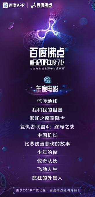 百度2019年十大年度电影出炉 流浪地球和哪吒入选