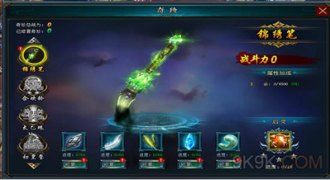 《龙符》奇珍系统:用锦绣笔做详解,下面五个材料栏每一个上线为60 点击修复会增加战力和奇珍的基础属性,每一个材料也有自己的获取途径,修复满为可增加高额的战斗力和属性,启灵徽章获取途径为开服冲榜,可对奇珍开启启灵,每次启灵可获得属性加成,全部属性+百分之5,其他的奇珍获取途径为等级八十级开启,道境二级开启等等,每一个奇珍的基础属性都不一样,生命,攻击,速度,防御,等 供玩家摸索。