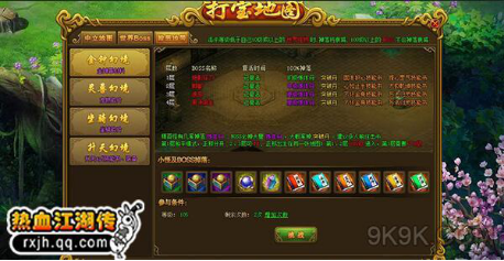 幻境地图是腾讯《热血江湖传》中的一大特色,在打宝地图的险恶地带界面中,共有金钟幻境、灵兽幻境、坐骑幻境、升天幻境四大幻境。而在新版本中,金钟幻境新增了第四层的全新内容,新的BOSS和怪物将在金钟幻境四层中依次登场。