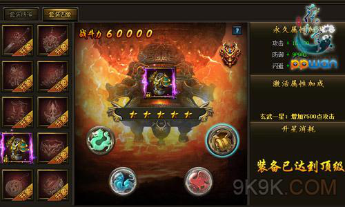 其中,套装四象系统是《花千骨》新增不久的神装系统,四象分别为青龙之力、白虎之力、朱雀之力和玄武之力。当玩家的等级达到100级时就可以开启青龙之力,但是若想在《花千骨》中开启白虎之力,只有装备达到套装铸神,装备铸1才可以激活白虎之力。朱雀之力和玄武之力则需装备铸2、装备铸3才可以激活。