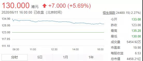 6月11日,网易正式在香港联交所上市,股票代码为9999、寓意长长久久,截止当日收盘价为130港币上涨5.69%。