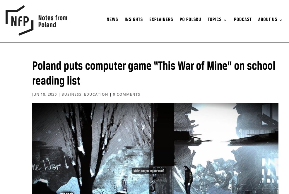 据外媒notesfrompoland报道,波兰独立游戏团队11 bit studios打造的生存模拟游戏《这是我的战争(This War of Mine)》将成为波兰教育部官方认可的电子游戏教材。