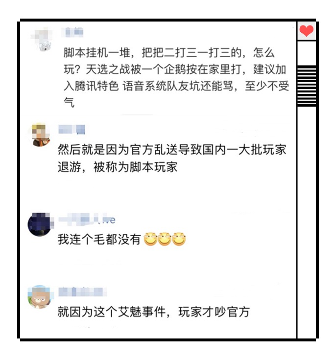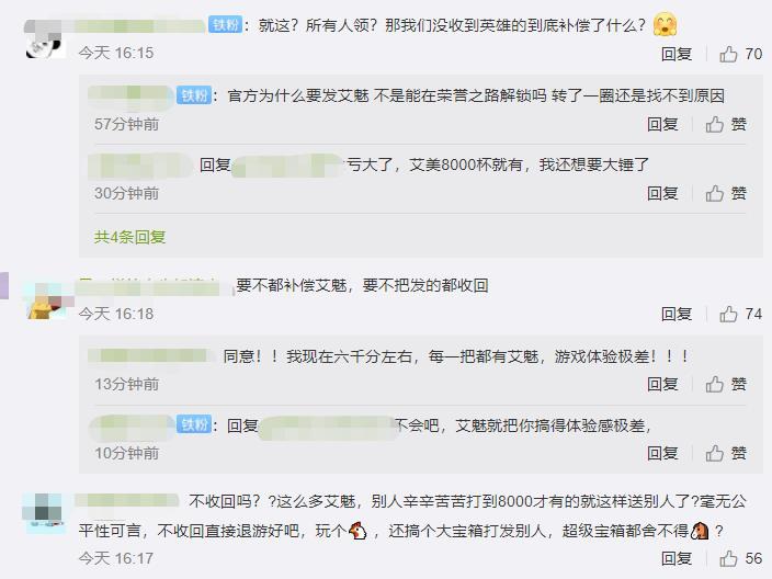 此外,加之官方此次的补偿宝箱基本开不出英雄,部分读者也将问题延伸到了“爆率”、“氪金”等内容方面的问题。