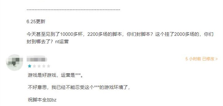 尽管官方已就脚本问题发表了“封禁公告”,可读者对于脚本问题的吐槽并没减弱。很多玩家也对游戏内部没有举报入口耿耿于怀,更有玩家表示,如今就算自己去找客服举报,都无法得到有效反馈。