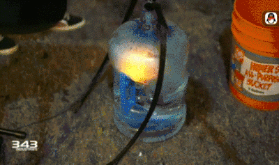 紧接着343为了完成富有科幻感的“化学罐”的音效制作,还真的制作出了一个简易的“化学罐”。