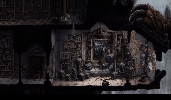 游戏的可行动区域相对明亮,色彩也更加丰富与复杂。彩绘玻璃、古旧的时钟、温暖的壁纸,每种场景的不同背景都巧妙地融合在了地图之中,给人一种杂乱却有序,浪漫且迷离的感官享受。