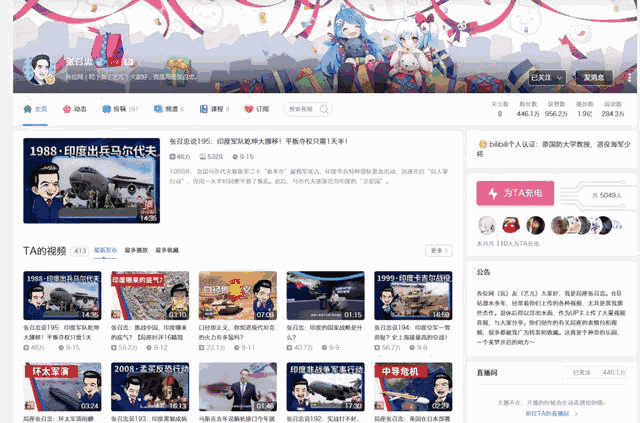 例如UP主“军武志”从古代及现代战争入手,聚集了不少战争内容爱好者;“沙盘上的战争”惯于用宏观角度在地图上审视一场战役的战略得失,其角度叫人叹服;“CRAZY262”(“军武位次面”栏目创作者)则用一系列硬核的兵器、军武视频“俘获”了一众真正的军武发烧友。