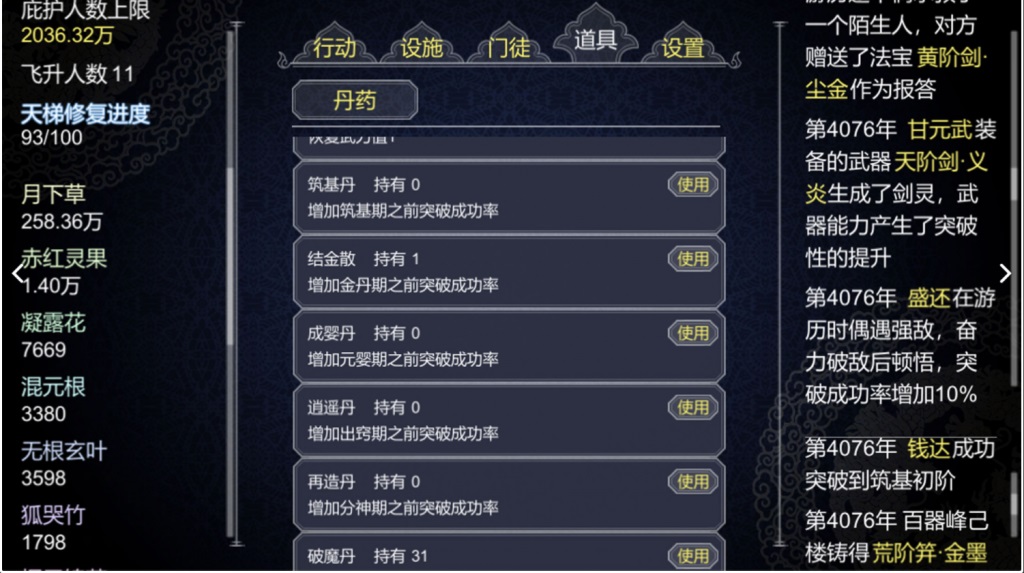 不像传统RPG仙侠那样有着明确的任务指示和引导,模拟经营修仙更像是给玩家提供了一个自由发展的平台。玩家可以按照自己的想法,随意发展门派,没有固定的套路。