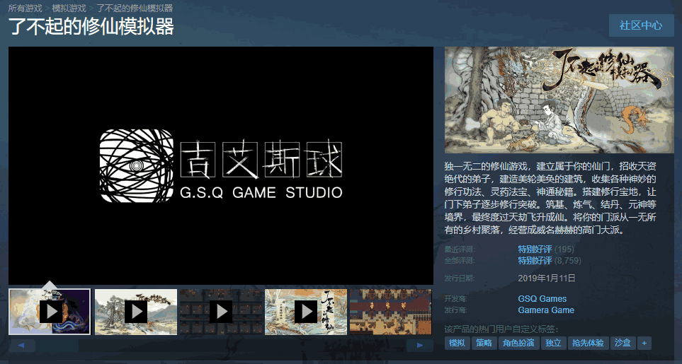 2019年1月,GSQ Games便发布了《了不起的修仙模拟器》(下文简称了修),真正意义上将“模拟经营”和“修仙”这两种题材相结合,做出了一款新颖的修仙游戏。