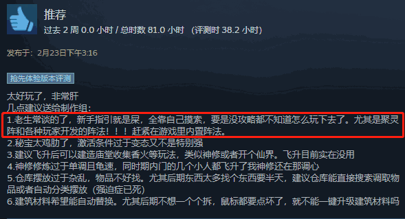 无论是在TapTap社区,还是在Steam上,大量玩家在赞扬《论修》和《了修》游戏玩法的同时,也在抱怨其复杂的系统对新手门槛过高。