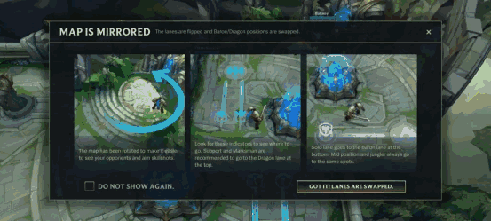 首局被分配到蓝色方的我,并没有发现手游采用镜像地图这一设定,只看到一些明显的简化,比如取消的基地门牙塔和三路水晶,这点倒与现今MOBA手游相同。除此之外,端游地图的其它区域基本得到再现,野区布局、野怪配置、河道蟹、大小龙甚至是爆裂球果等可互动元素也被还原。