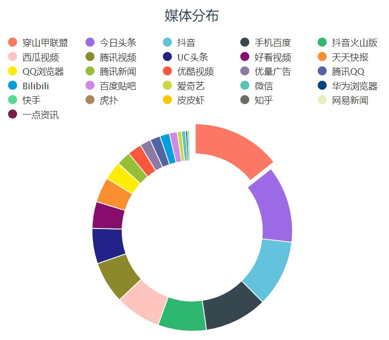 《高能手办团》投放媒体分布图,来源Dataeye