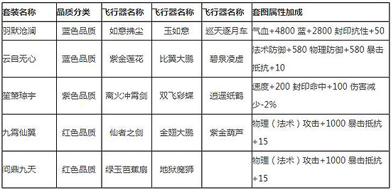 集齐特定飞行器激活套装,可额外获得属性提升。