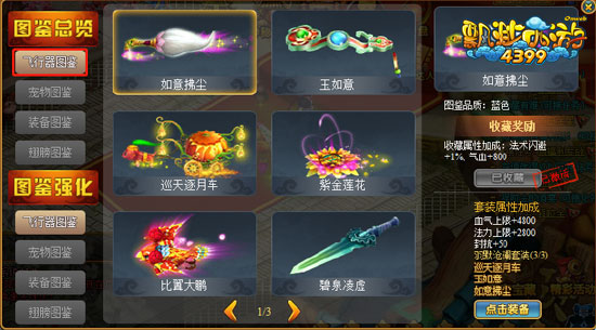 前往图鉴强化可对已收藏的飞行器进行强化,通过使用聚灵石强化可以获得属性加成,每级强化加成固定增加3点命中,附加属性类别按收藏属性增加。