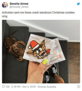 根据另一位主播Genelle Aimee的说法,动视去年(2018)也寄出了古惑狼主题的饼干。