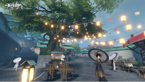 当进入雨天时,路上的NPC会撑起雨伞或者戴上斗笠,免得被雨水打湿,偶尔,还会有好心的NPC为没有准备的你撑伞,即便是在游戏里,也能感到一丝温情。不过,在雨中行走,也要小心,万一受到了“雷神的眷顾”,可是会被雷劈到的哦!