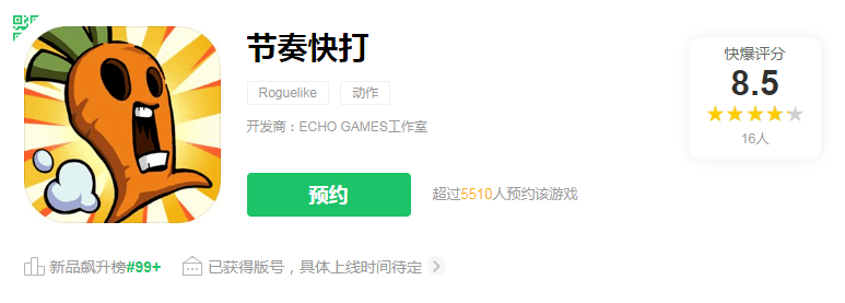 椰岛发行的《节奏快打》在TAPTAP、好游快爆上均获好评