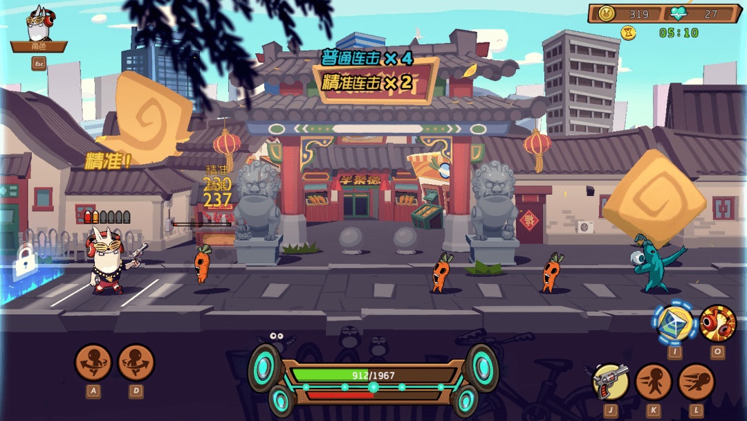当然,作为一款音乐游戏,《节奏快打》在音乐上的设计也很下功夫。游戏的每首音乐都配合了地图风格,动感十足毫不单调。四合院地图中选取的一首老北京风格动次打次,就颇为让人惊艳。加上游戏中不同武器的按键时间及手感差异,这种伴随音乐打节拍的体验可以说是常玩常新的。玩家很容易就会被音乐带着走,一关关地持续打下去。