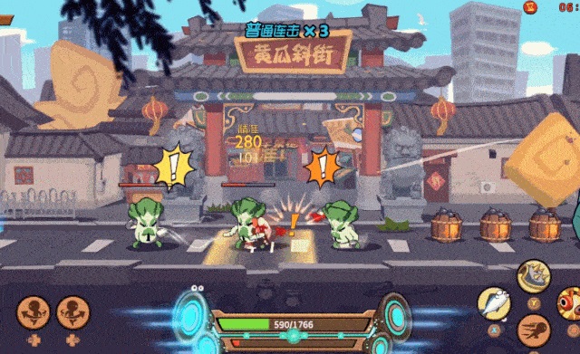 横版动作框架中,连击、闪避、走位等操作的反馈非常直接,节奏也很快,本来就是很刺激的玩法。而《节奏快打》将音乐节奏加入后,玩起来无疑更加手忙脚乱了。玩家除了要对连击闪避等动作投入注意,现在还需要关注每个动作的判定是否到位,这就让体验变得十分充实了。