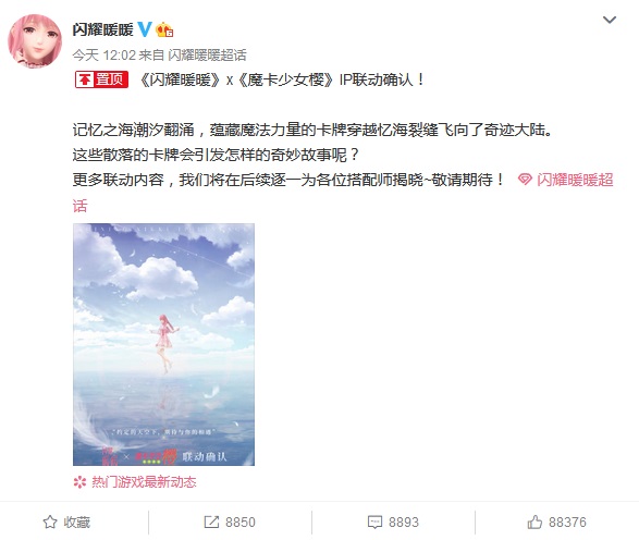 6月15日,《闪耀暖暖》官博发布了一条微博宣布:《闪耀暖暖》与《魔卡少女樱》IP联动确定展开。