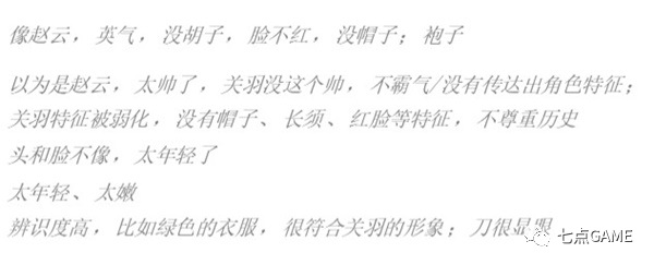 游戏的主美阿萌表示:「一开始的关羽,我们设计的较为年轻,所以三国玩家接受的程度比较低,觉得太帅了,不像关公。对此我们也做了不少调整,包括让关羽的外貌更符合大众对“美髯公”的认知,特意加入了长长的胡子。关羽的人设最少调整了4次,每次都会根据玩家们的反馈,一次一次做优化迭代调整。」