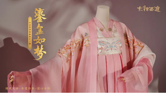盛典晚会现场,古琴艺术家金润一演奏了大话全新古琴曲《大话长安谣》,孟庆旸则以舞蹈形式演绎了《大话西游2经典版》及《大话西游2免费版》即将推出的首款六艺神兽的姿态,再加上《鎏金如梦》节目中,大话首款高定汉服也正式登场。干货十足的内容环环相扣,为晚会添足了信息量。