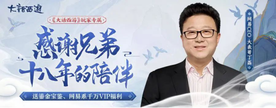 7月15日,被玩家亲切称呼为大表哥的网易CEO丁磊突然发布了一则视频真情表白玩家,“好在有你们,十八年来,大话西游一直都很好。”丁磊在写给大话玩家的亲笔信中不讳言,“网易上市20年,大话西游18周年,网易的成功和大话西游有分不开的联系”。作为对多年情义相挺的大话玩家的回馈,丁磊也同时宣布为所有大话玩家送上总价值超过万元的专属豪华礼包,为随后为期一个月的欢聚盛典正式拉开了序幕。
