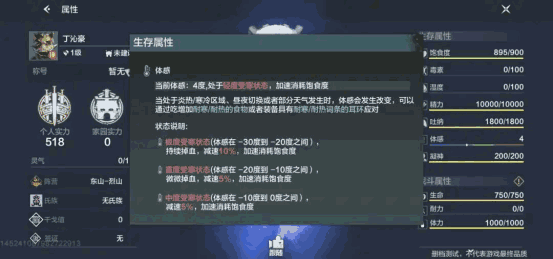 体感温度、饱腹度、耐热耐寒、湿度,各种生存指标一应俱全。