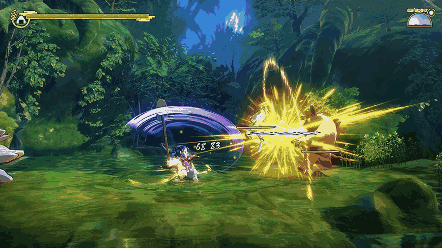 消耗技能可以使出强大的武技,威力强大的一击和连续攻击等效果各不相同,技能有冷却时间。羽衣伸长抓住墙壁和天花板可以移动到远处,如果使用羽衣抓住敌人,可以瞬间绕到敌后,也可以将敌人拉近后再扔出去。