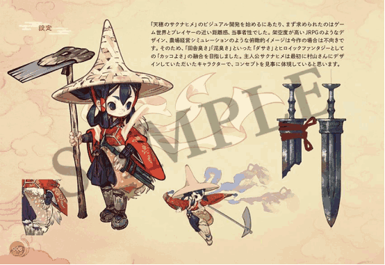 此外,收录角色和美术背景等本作美术设定画,厚达一百四十页以上的「《天穗之咲稻姬》彩色画集」,能够看到其中一部份的试阅版已经在游戏官方网站公开。