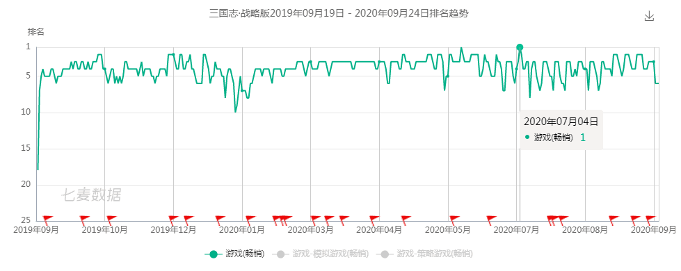 SensorTower《2020年8月全球热门移动游戏收入TOP10》显示,《三国志·战略版》是唯一闯入iOS收入榜单的SLG。回望游戏近一年的成绩,会对它亮眼的成绩有更清晰的认知:上线当天空降畅销榜Top 20,随后迅速攀升闯入前十,之后基本稳定在了Top 5以内,期间曾两度登顶。