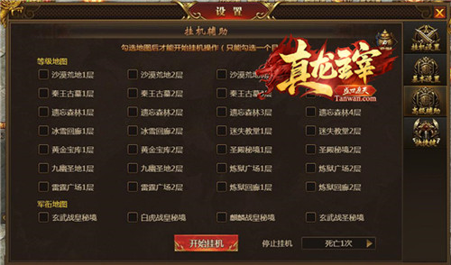 在《真龙主宰》这次的更新中,新增挂机自动跑图功能,开服第15天开放。只要满足进入条件,勾选想要挂机的地图,角色就会自动跑到对应地图挂机打怪,就算死亡后也会安全复活重新回到挂机点!