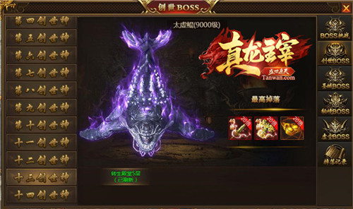 新增6张转生地图,转生殿堂1-6层,角色分别达到13、14、15、16、17、18、19转可进入,里面有不同等级的《真龙主宰》创世神可供玩家击杀。
