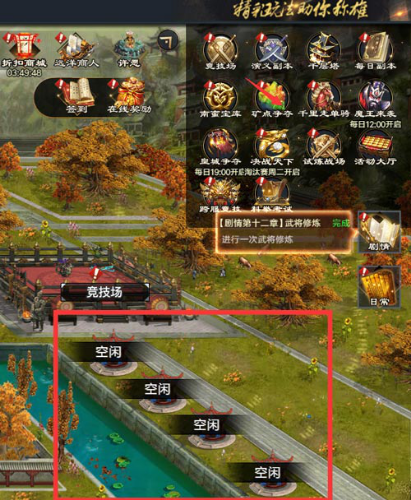 征战系统入口:主城点击征战按钮进入。征战攻打:(1)点击地图的部队选关。(2)弹出征战部署界面,可以按住武将头像拖动改变阵位。(3)点击出战进入战斗。(4)点击扫荡按钮打开扫荡界面,通关关卡3星后可以进行扫荡。(5)点击出战部署,可以打开布阵,进行布阵的相关操作。