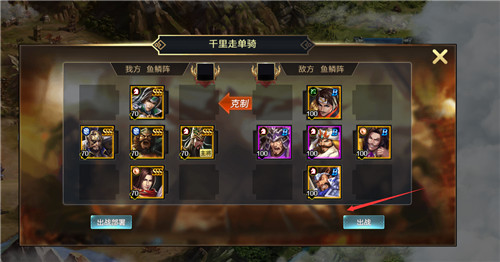 点击出战部署进行队伍编辑,千里的布阵和征战的布阵不共享。