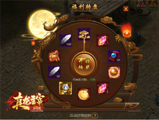 只要开服45天后的服务器就可参与福利转盘!怎么转呢?在活动期间充值可以获得转盘次数,消耗次数抽取转盘奖励,累计抽取10次可以获得所有奖励呢!