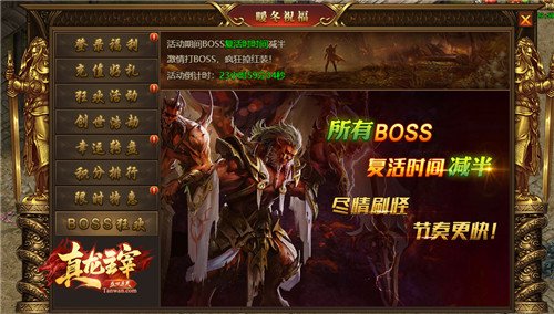 激情打boss,疯狂掉红装!活动期间BOSS复活时间减半(跨服BOSS除外),立即刷怪。