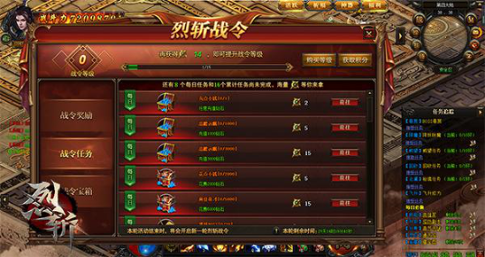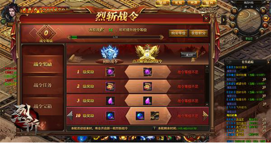 风云交际,天下英雄论道。《烈斩》的世界充满无数机缘静待你的探索,激情四溢的PK战斗,狭路相逢勇者胜,声势浩大的行会团战在热血迸发的今天上演大戏,而当玩家达到一定等级,还可通过主页面进入战令系统,享受养成玩法带来的成长快感。在战令玩法中,共分为初级战令与高级战令两大品阶,解锁不同品阶、等级的战令,可以获得价值不菲的道具奖励。例如:五品龙魂、武器自选箱、限定永久时装、稀有翅膀装饰等等。