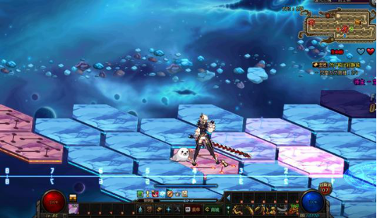 第二个是虚无之境,这一个是老版异界走格子的简化版本,入场后玩家会被放到一个格子上,接着格子会一个接着一个亮起来,玩家需要按格子亮起来的顺序走格子,正确后再循环一次,完成后就会掉落随机的精炼的时空石。