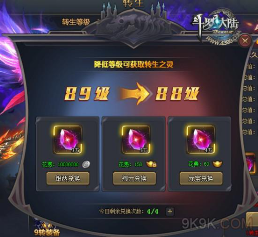 3.消耗60元宝获得4W转生之灵