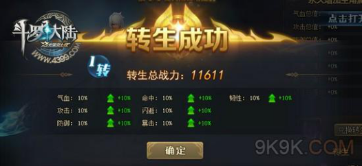 在满足条件之后点击转生、扣除相应等级和转生之灵后就会转生成功,将会显示转生次数、转生总战斗力加成以及属性的加成百分比。