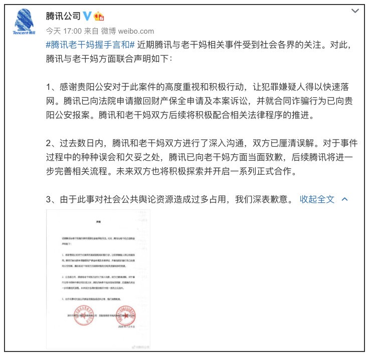 几经反转后,腾讯起诉老干妈事件迎来了大结局。双方误解已经厘清,最终握手言和,未来还将展开正式合作。