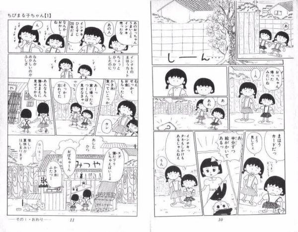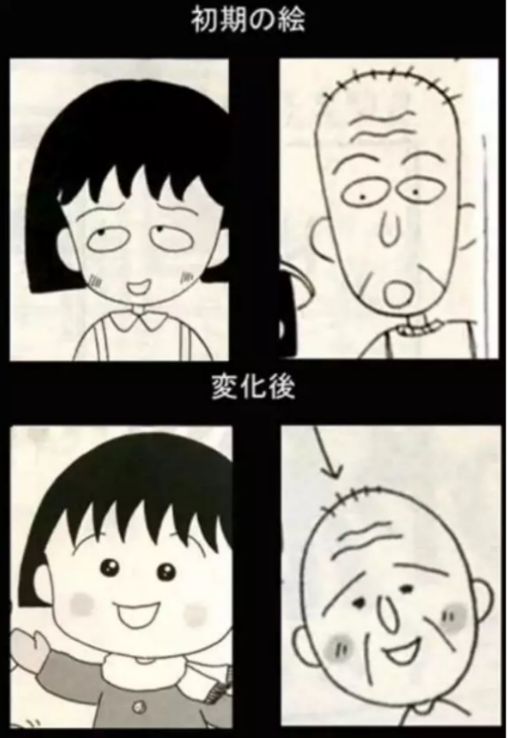 八十年代还有一种比较极致的简笔画的风格就是《樱桃小丸子》系列,感觉又是回到了四格漫画时代。但是这种简约又有特色的风格,可爱的很魔性,非常吸引人。