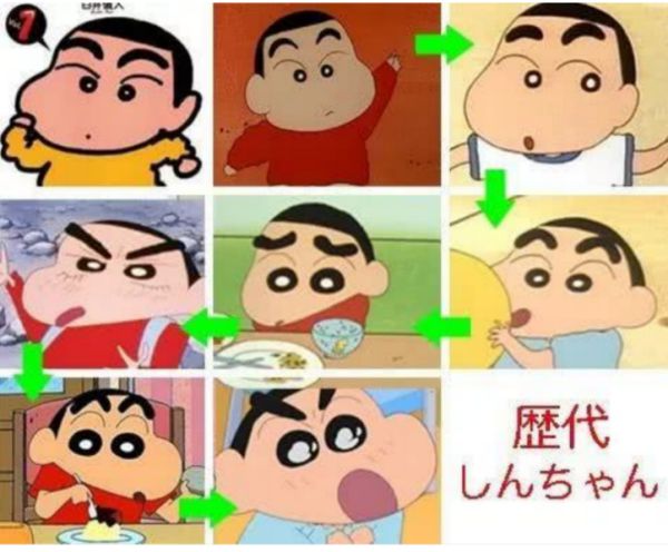 比如,要说画风简单,有臼井仪人创作的简笔画类型更夸张的《蜡笔小新》。虽然线条的使用非常奔放,类似于手抖画出来的感觉,但是丝毫不影响人物有趣的动作和夸张的神态表现,这种画风的变迁在当时属于一种非常创新的风格。这个作品在1992年进行了动画化。另外的这种类型的作品《樱桃小丸子》也在1990年进行了动画化,这两个作品都是SHIN-EI(A PRO)公司的著名作画师 汤浅政明 进行的制作。到这里我们就能知道了SHIN-EI(A PRO)的作画风格。