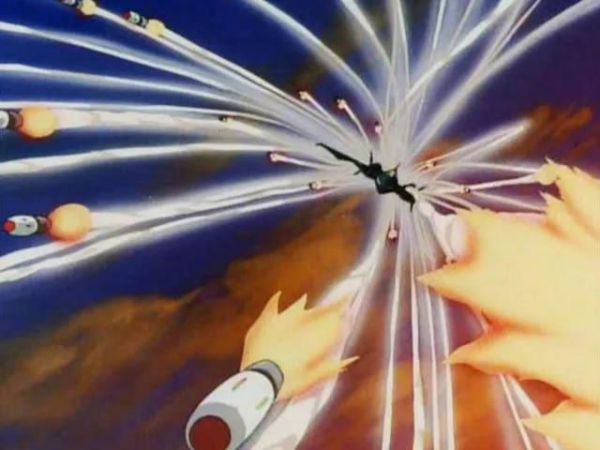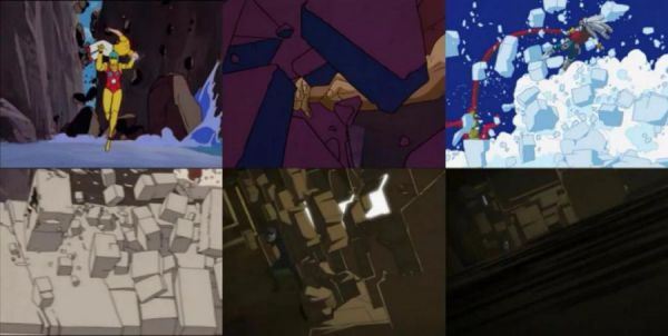 镜头的运用无论是在动画中还是游戏中都是非常重要的一个表现方式,对画面的绚丽程度和情感表现具有重要位置。甚至许多动画公司都有自己特定的经典镜头角度和动作。比如GAINAX公司重复使用的一种正视镜头,角色双手抱在胸前,双脚岔开,给人一种霸气的感觉: