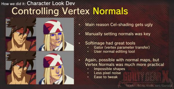 在西川善司的采访中可以了解到《罪恶装备》团队想要表现的是完全还原电视动画的那种感觉。所以他们是完全按照动画帧率进行制作的,并且取消了线性插值。大部分二次元游戏对这部分的还原好像不是很在意。