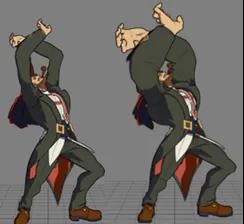 动画的扭曲除了形状的长短变化还有缩放变化,例如《罪恶装备》中为了表现人物手部蓄力,会增大手臂的大小。