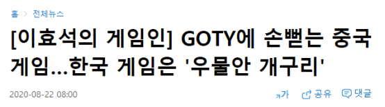 甚至韩联社还写出了这样的标题:《向GOTY伸手的中国游戏…韩国游戏是‘井底之蛙’》(机翻)