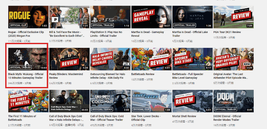 《黑神话:悟空》在海外有多火?它以346万的播放量成为了 IGN 频道里近一个月内最高的视频,甚至超过了扎导剪辑版本的《正义联盟》预告片。